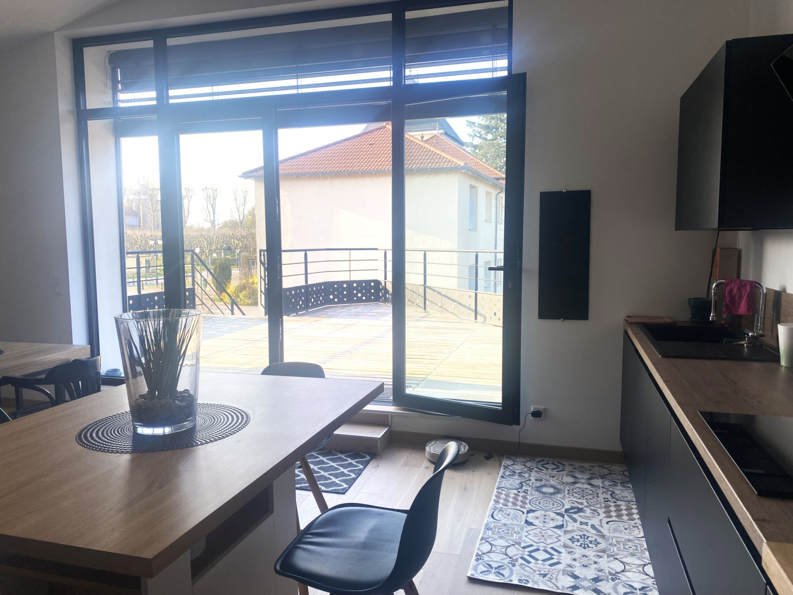 A VONNAS, superbe appartement MEUBLE T4 de 91,96 m² avec une terrasse de 27 m². Cet appartement à sa propre entrée au RDC. Par un escalier extérieur, vous arrivez à votre habitation. Belle pièce de vie avec cuisine équipée impeccable, 3 chambres lumineuses avec rangement, superbe salle d'eau, buanderie et wc. Grande et belle terrasse de 27 m². Le petit plus, ce logement dispose d'une borne électrique à domicile pour véhicule électrique. Facilité de stationnement car parking au pied du logement. Libre de suite. Chauffage par climatisation réversible. Idéalement placé aux pieds des commerces, ce logement vous séduira assurément. RARE. Montant estimé des dépenses annuelles d'énergie pour un usage standard entre 660 € et 970 € / an (année de référence des prix de l'énergie : 2021). Contacter Carole BERTRIX, agent commercial "EI" Idimmo, inscrite au RSAC de Bourg en Bresse n° 839 950 979 - Tel : 06.64.91.50.38. Les informations sur les risques auxquels ce bien est exposé sont disponibles sur le site Géorisques : www.georisques.gouv.fr.