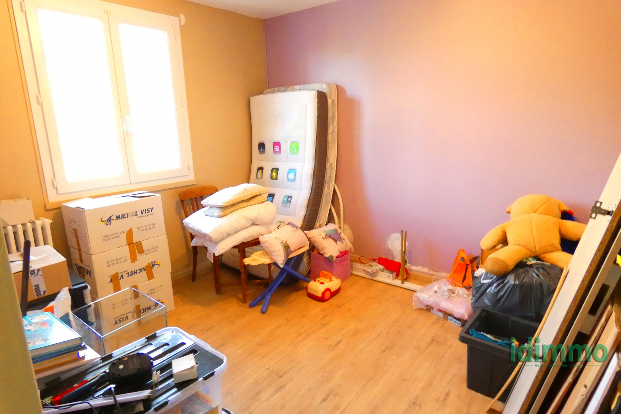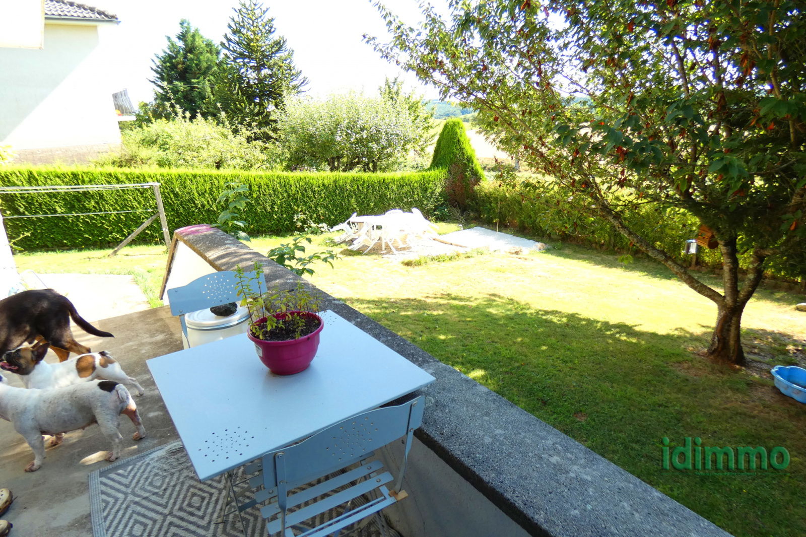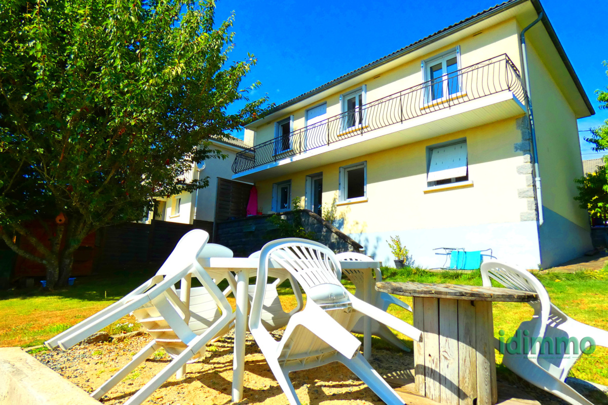 Aurillac 10 kms. Sur 460 M2 de terrain clos et arboré, belle maison comprenant au RDC: 1 salon, 1 cuisine équipée, 1 wc, 1 garage. A l'étage 4 chambres (donnant sur balcon jolie vue dégagée), 1 salle de bain (baignoire + douche), 1 wc, double vitrage PVC, chaudière neuve à granules, et chauffe eau Thermodynamique. Secteur calme.