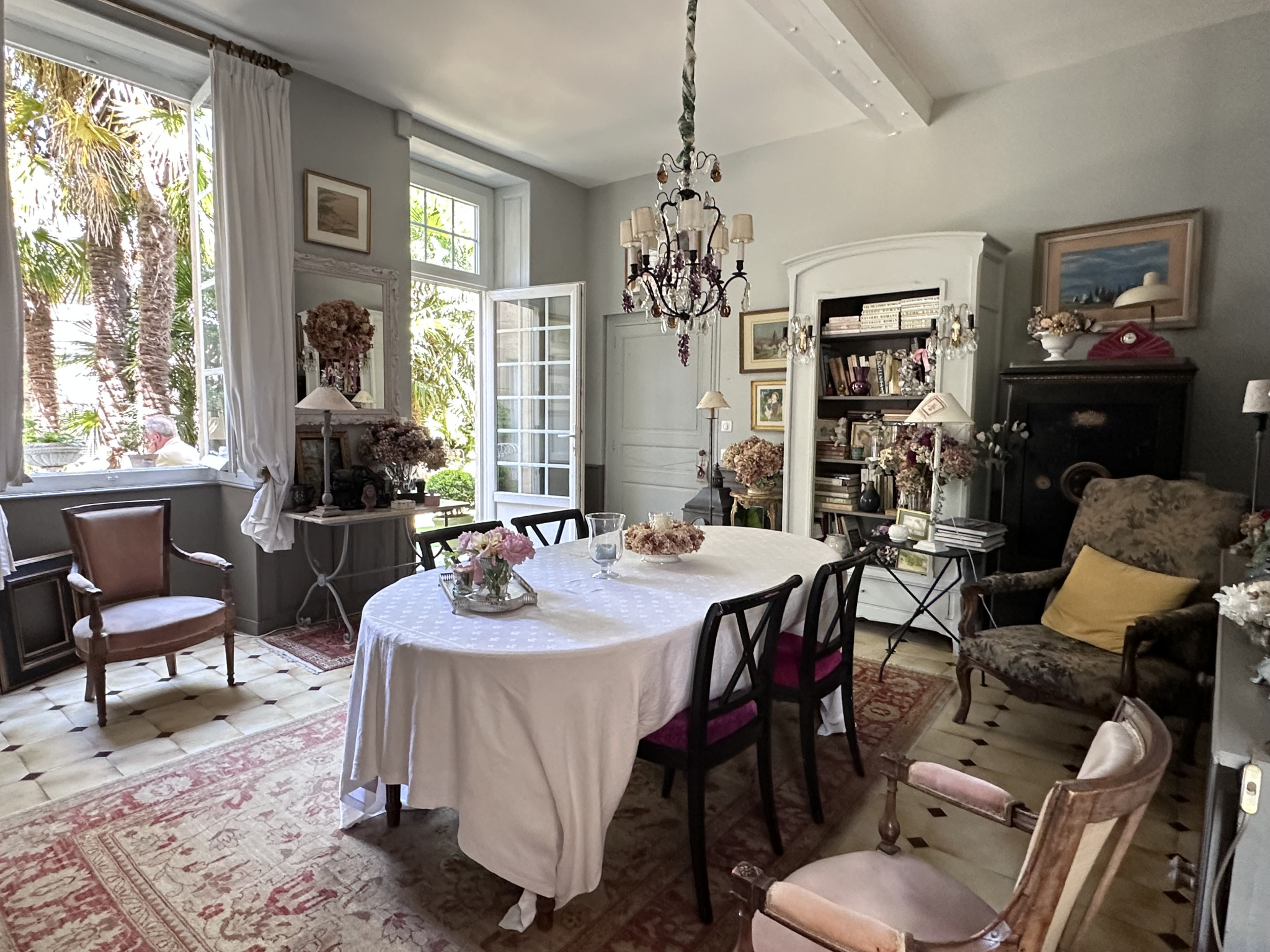 Pièces d'accueil et de vie lumineuses dont une magnifique orangerie, double salon, chambres en suite au RDC avec vue sur le jardin...