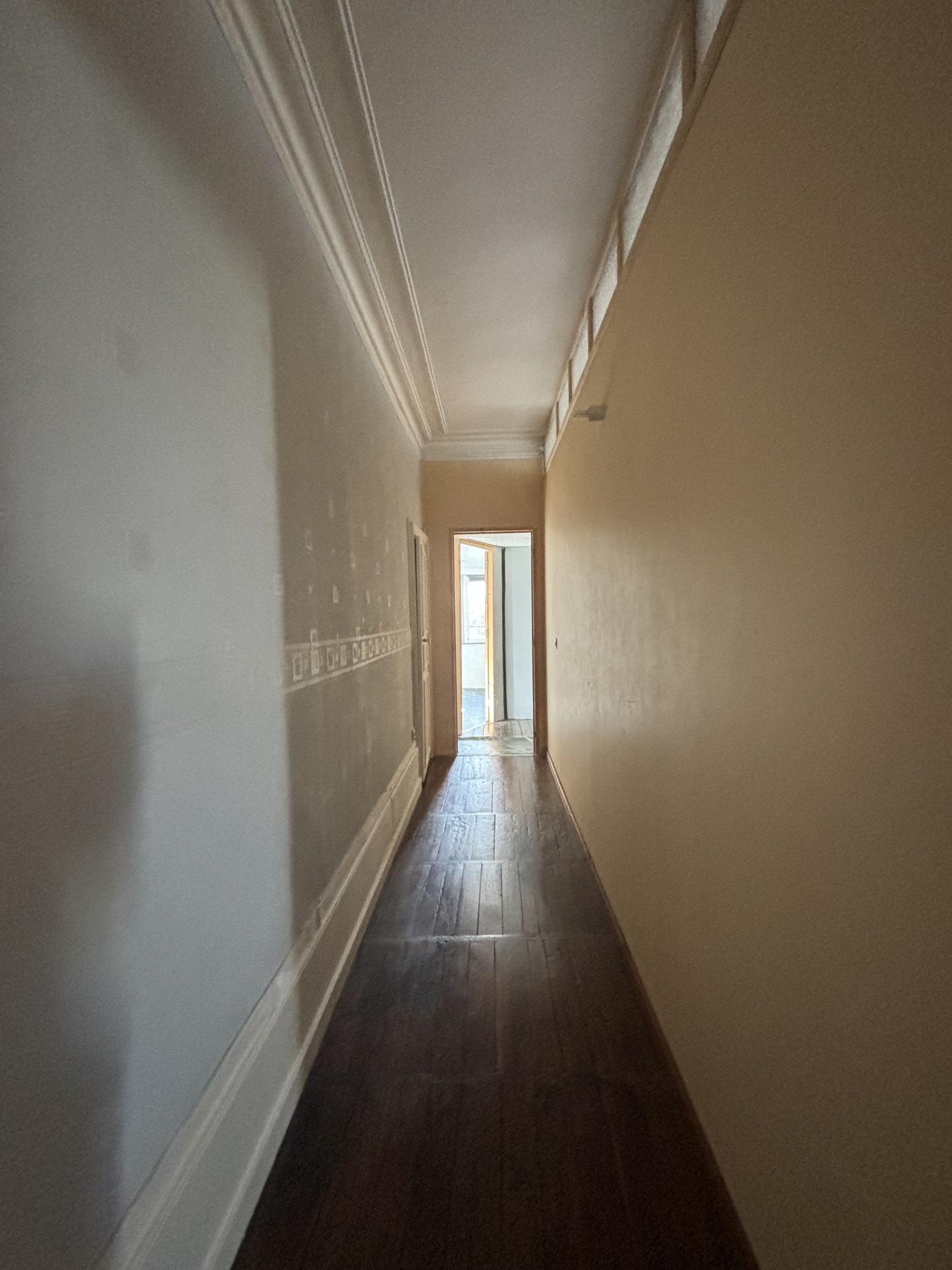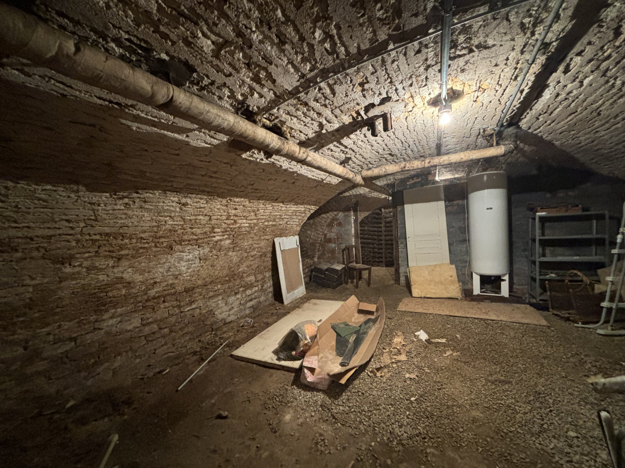 Le logement rénové de 70 m² (loué) comprend trois pièces , toilette, salle d'eau , chauffage gaz de ville . (accès indépendant) et une cour.