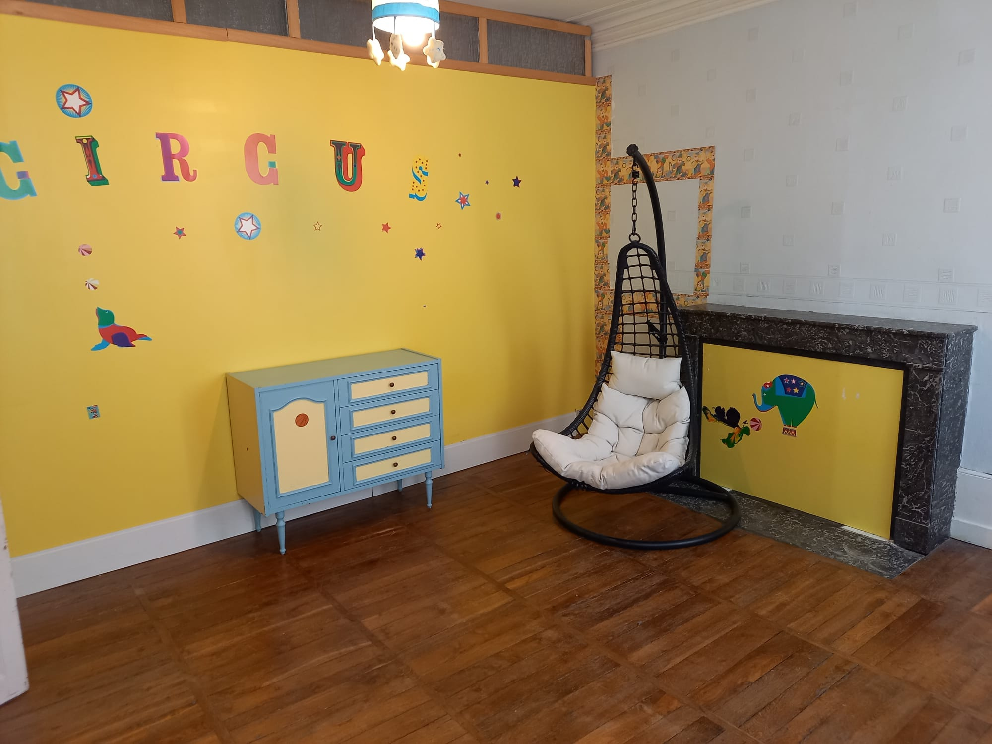 Au premier étage, un grand palier dessert 6 chambres de 12 à 19 m² , un toilette, une salle de bains (baignoire et double vasque) et une salle de jeux . Parquet chêne au sol.