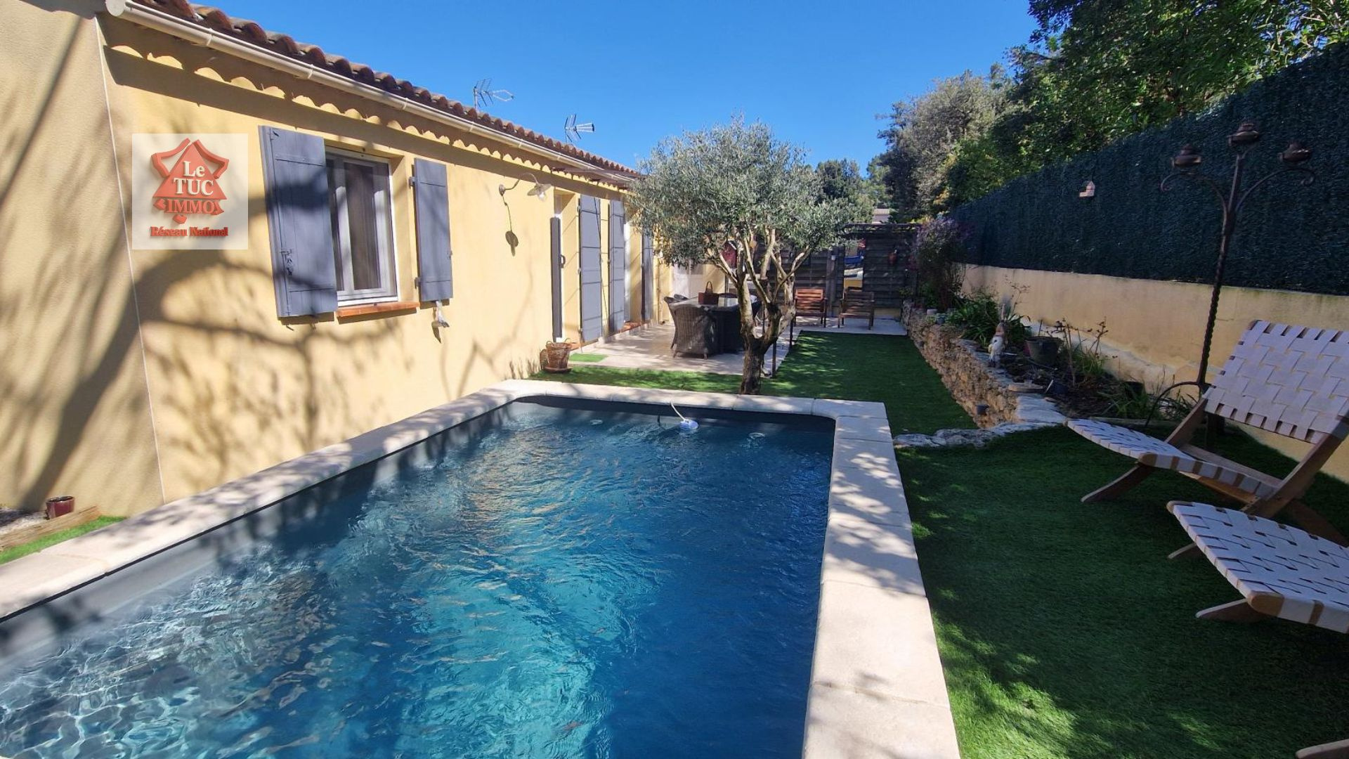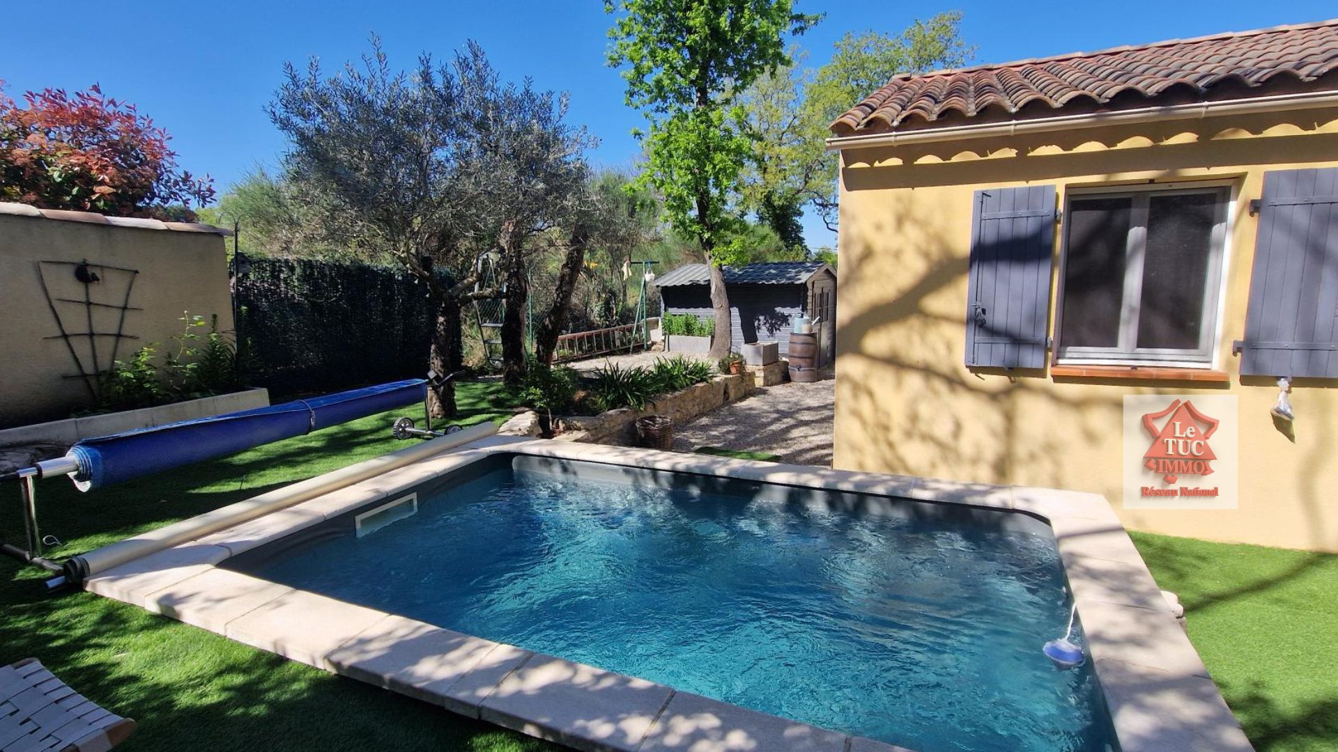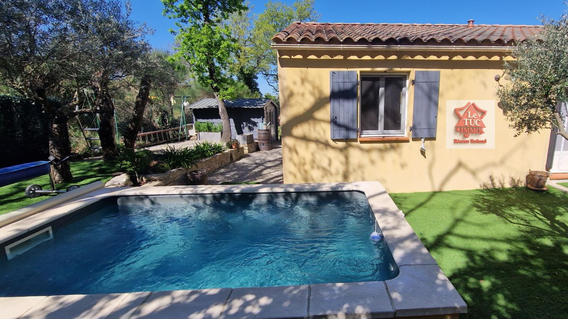 A l'extérieur le charme opère tout autant : un jardin joliment aménagé, facile à entretenir, une belle terrasse carrelée avec pergola et un coin piscine 3x4 qui vient parfaire cet espace intime et apaisant.