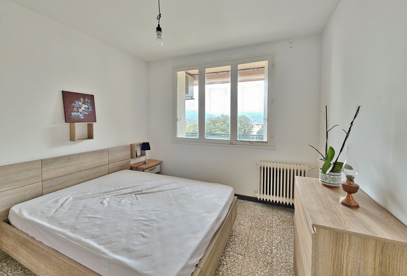 Il se compose d'une entrée, d'un séjour avec accès balcon, d'une cuisine aménagée séparée avec accès loggia/buanderie, deux chambres, une salle de bain et un wc séparé.