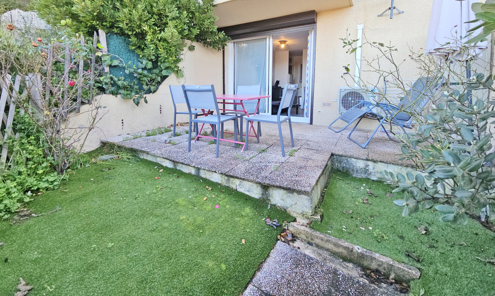 Terrasse d'environ 12m² avec agréable jardinet.