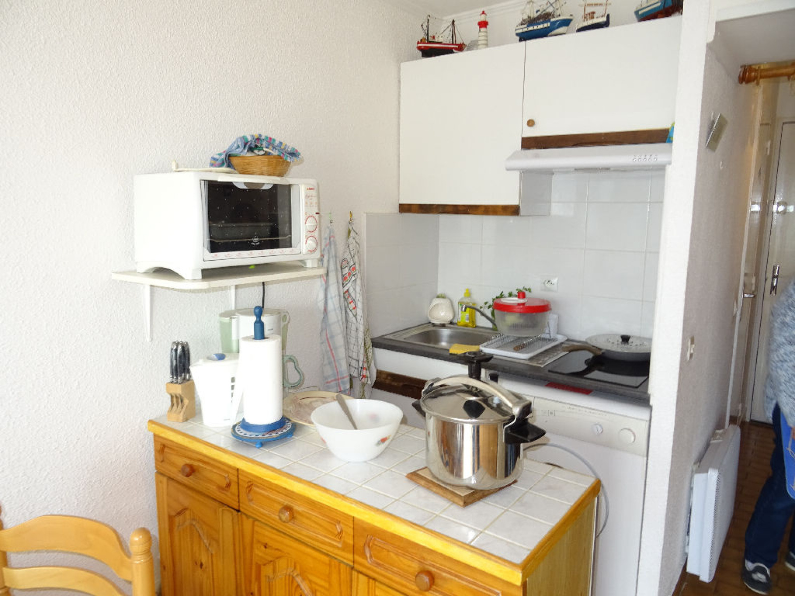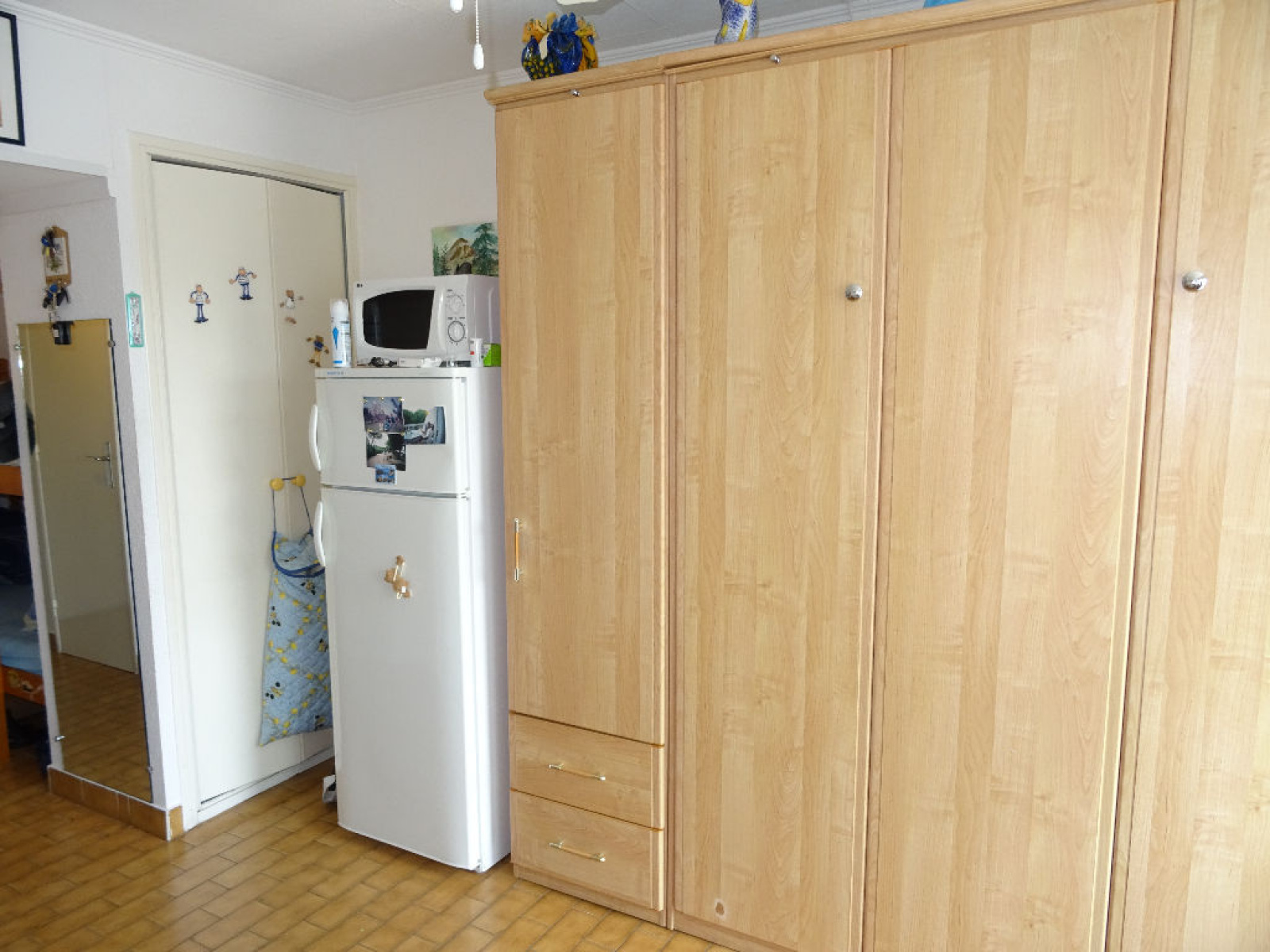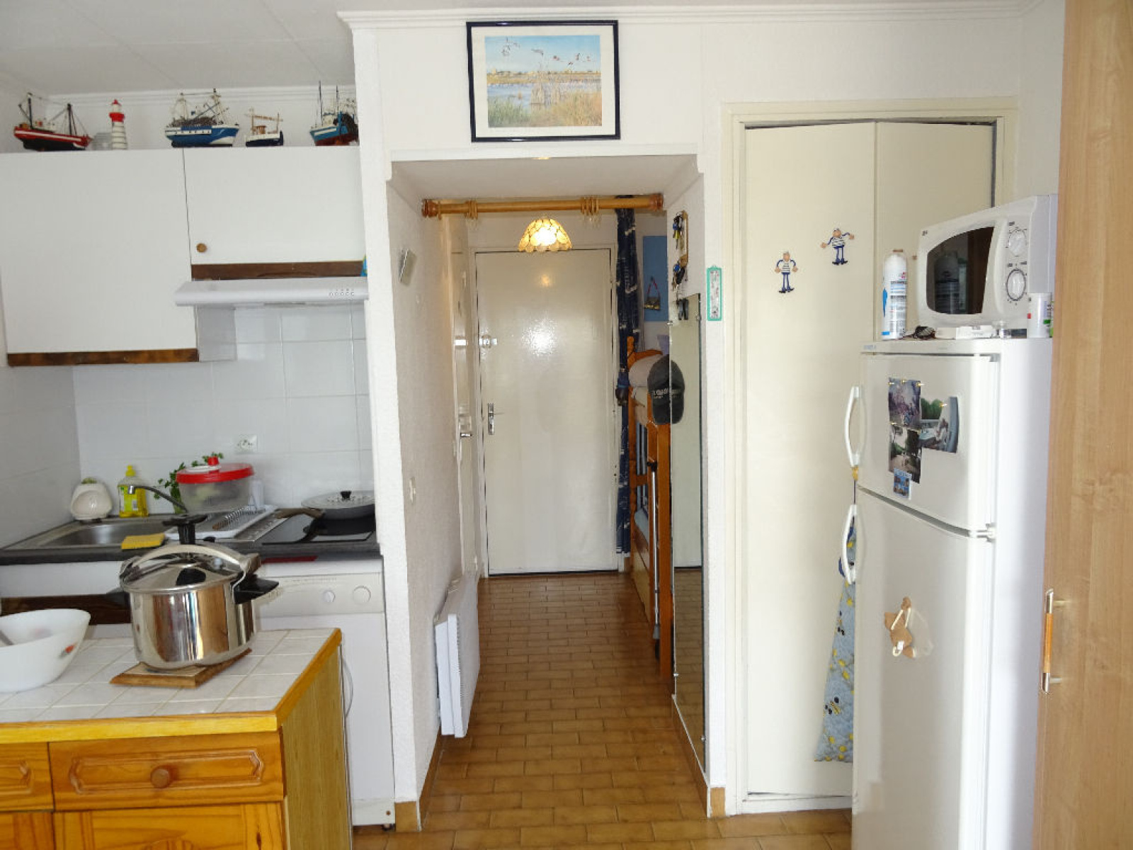 Plage Sud, ce studio de 23m² est très ensoleillé et une loggia de 5m². Il comprend une salle d'eau avec WC, un coin cabine, une kitchenette et une jolie pièce de vie avec son lit mural, espace optimisé. De plus le bien dispose d'un cellier et une place de parking.