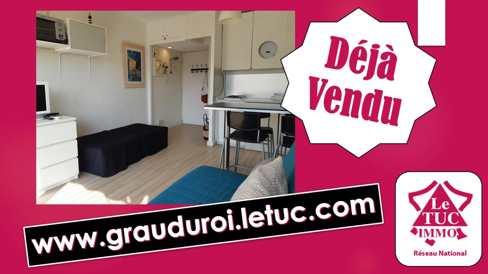 Situé sur la plage Nord, à 1 pas du port, 2 de la plage... 100m² du centre commercial. Au 1er étage, dans résidence sécurisée, ce charmant studio dispose d'une belle pièce de vie, une cuisine ouverte, une salle d'eau avec WC et un balcon de 6m². Contactez nous pour plus d'informations. www.grauduroi.letuc.com