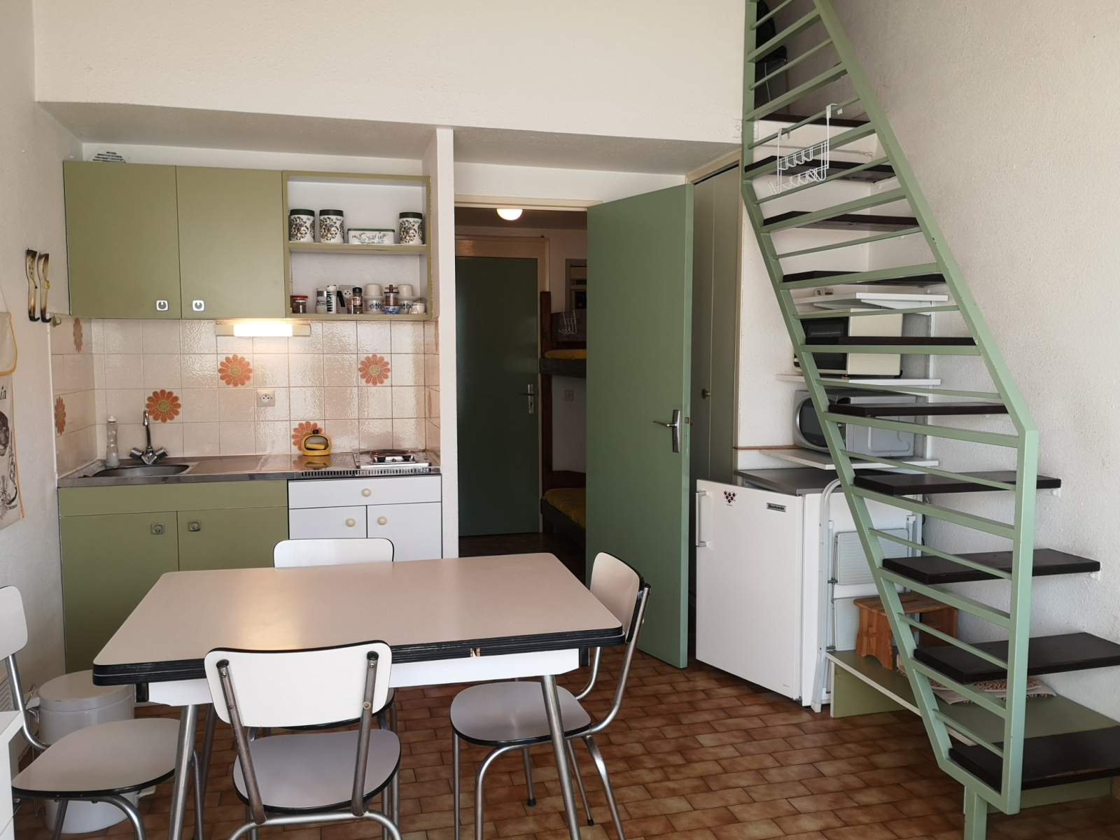 Il mesure 35m² et compte une chambre en mezzanine, un espace cuisine et une salle d'eau avec WC.