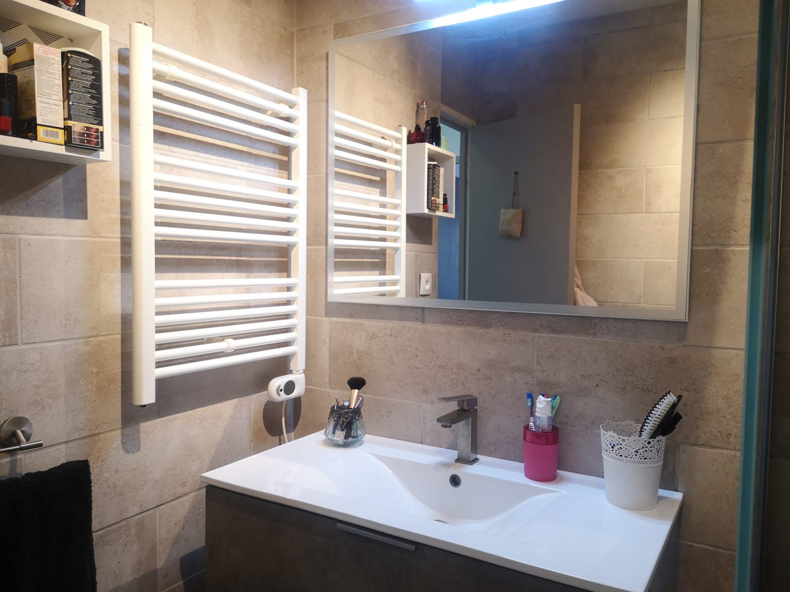 Sa salle d'eau récemment rénovée avec goût accueil une douche à l'italienne et des WC séparés.