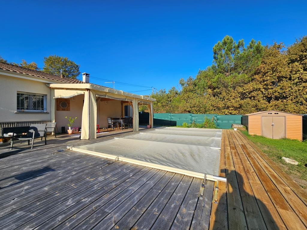 À l’extérieur, vous profiterez d’une terrasse bois avec pergola et d’une piscine sécurisée (3,5 x 7 m), le tout sur un terrain clos d’environ 600 m².