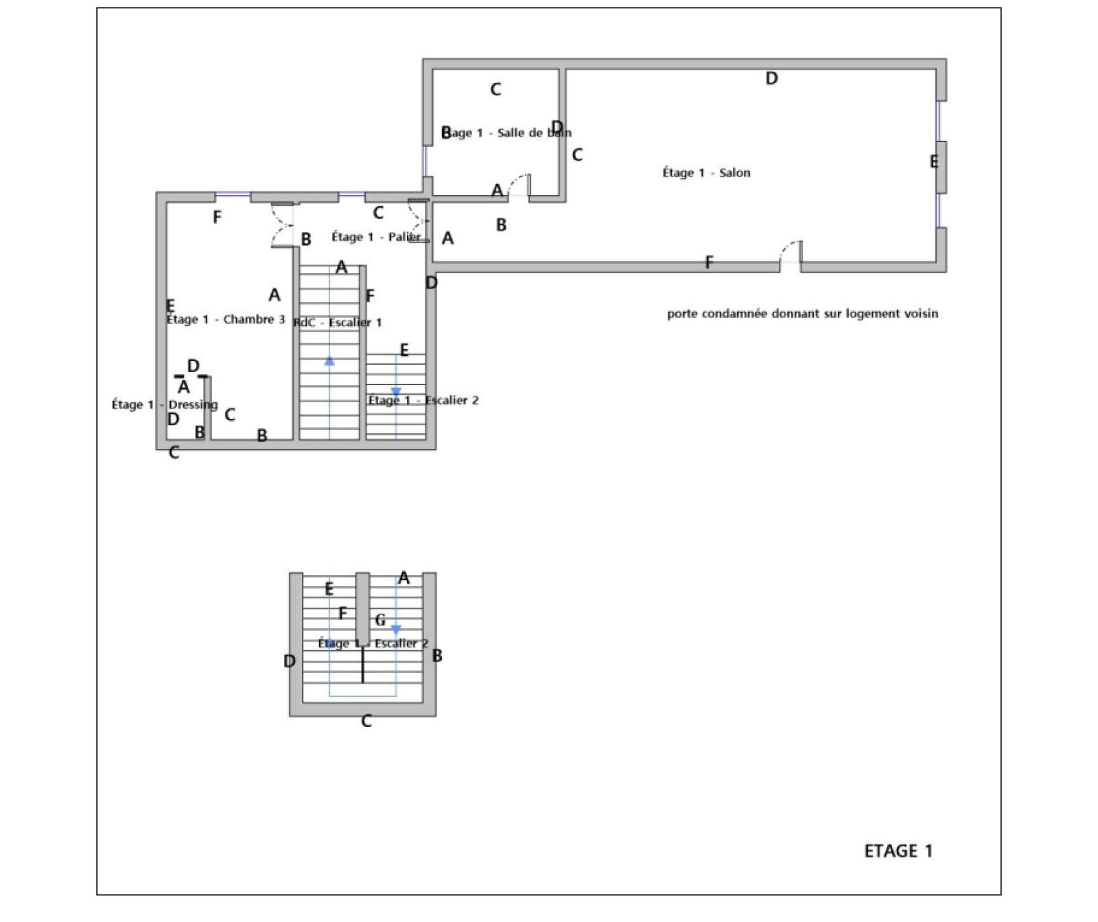 A l’étage vous trouverez un salon généreux de 45 m² (balcon), une chambre, une salle de bain avec WC.