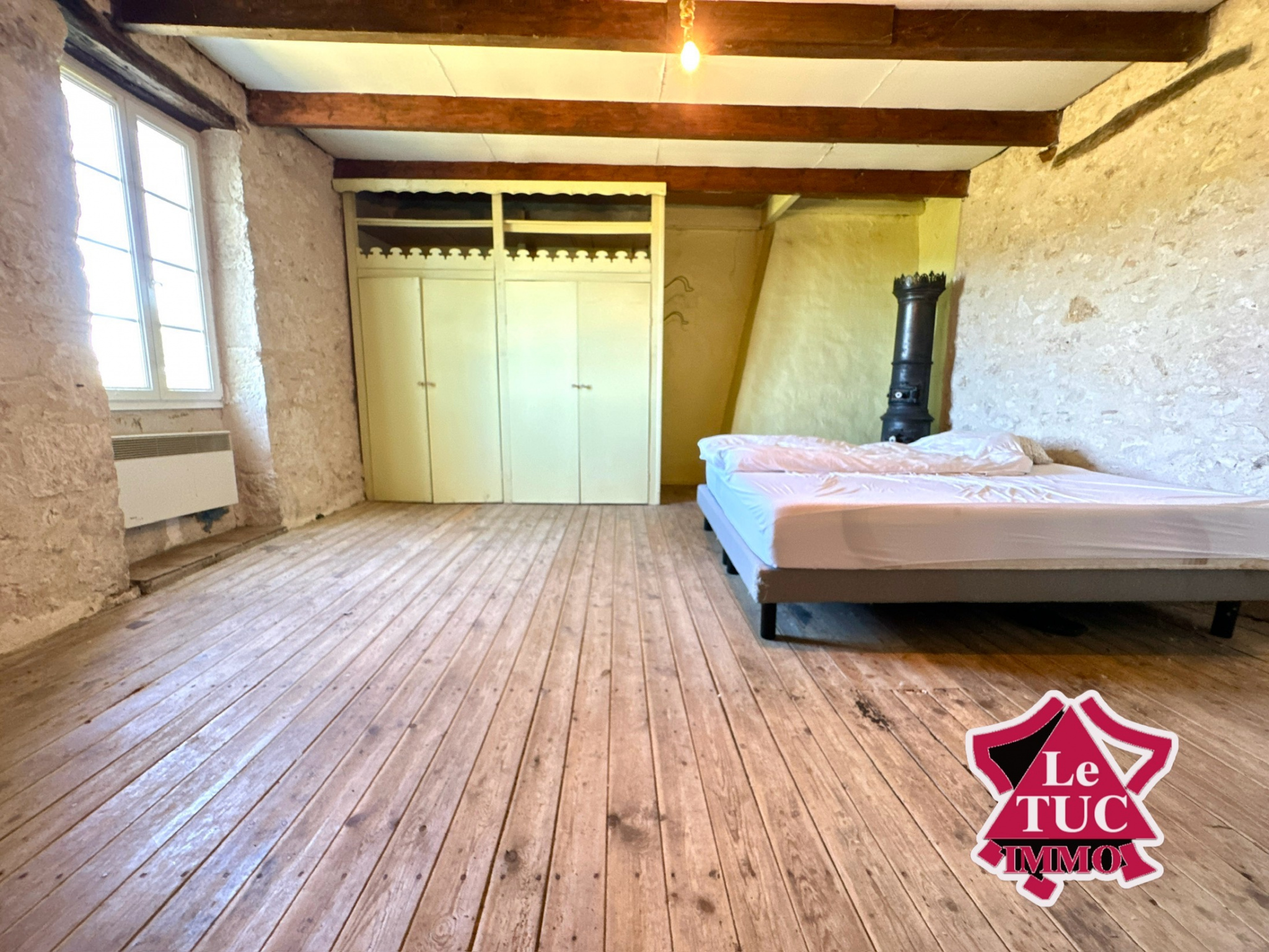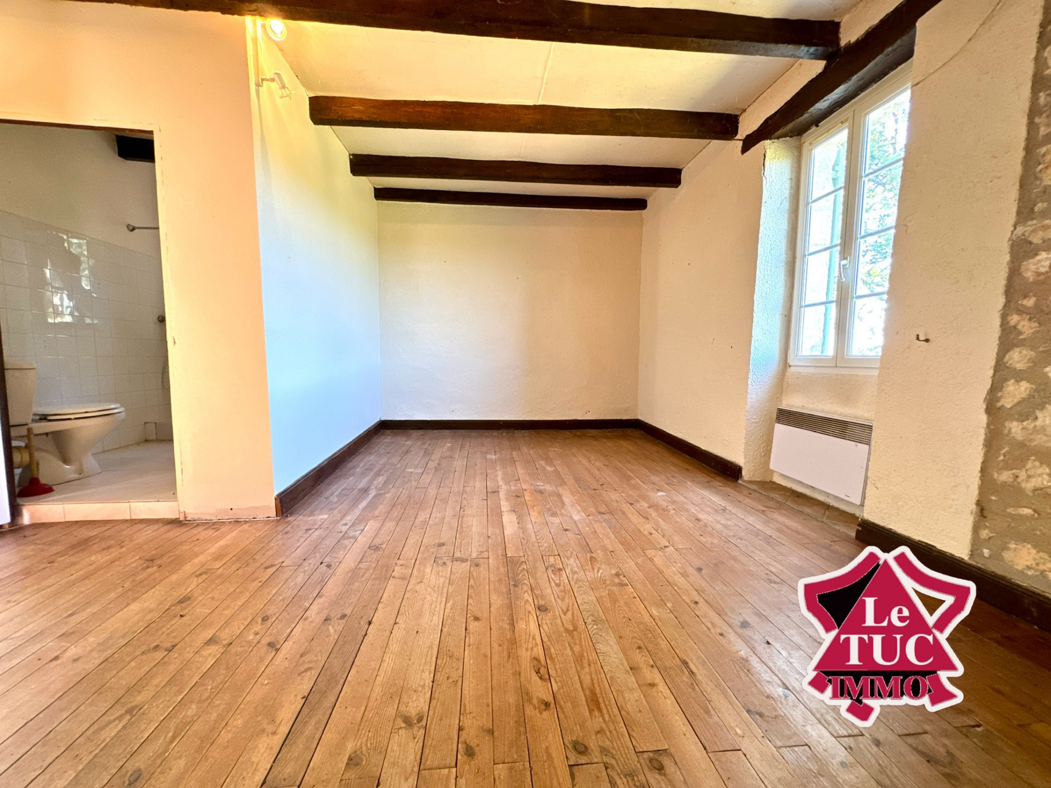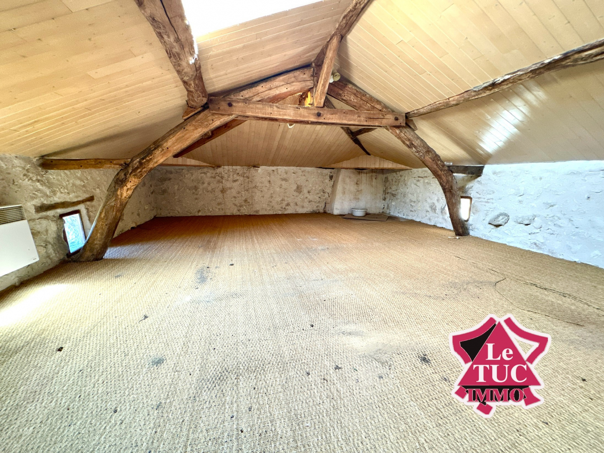 Au deuxième étage sous les combles, deux espaces pouvant servir de chambre chacun d’environ 15 m², idéal pour un dortoir ou une salle de yoga.