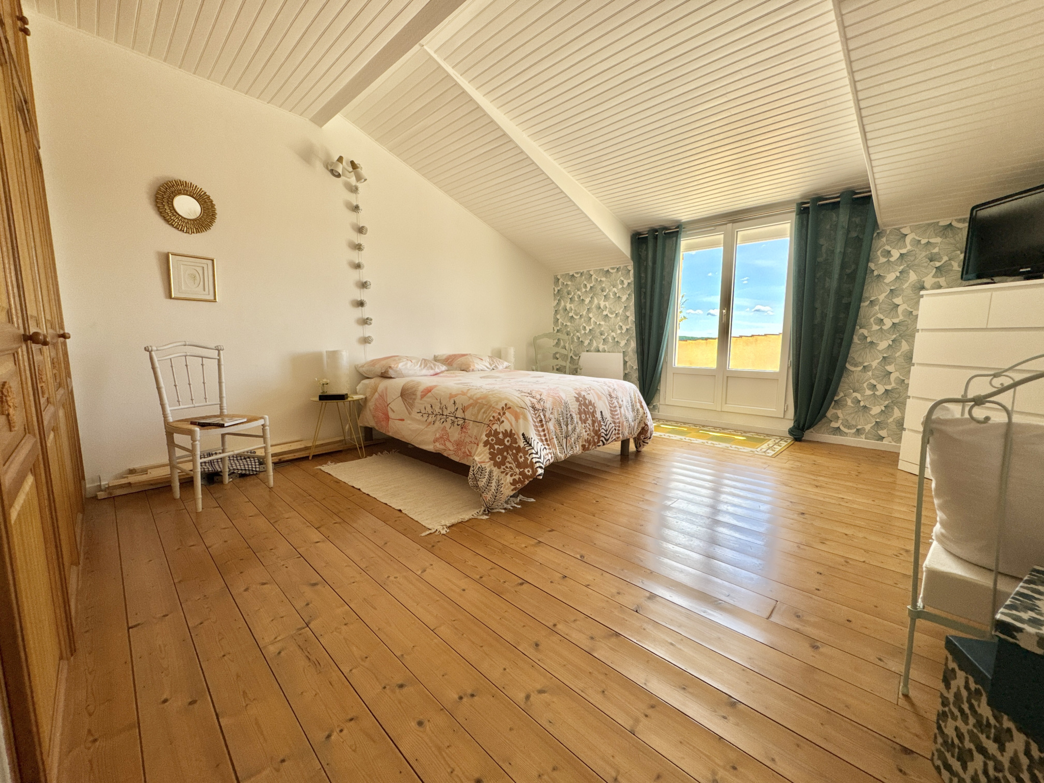 À l’étage, 4 chambres : une première de 15,30 m², une seconde de 11,40 m², une troisième de 13,80 m², et la quatrième de 21,30 m² avec placards et terrasse panoramique privative de 16,30 m² plein sud.
