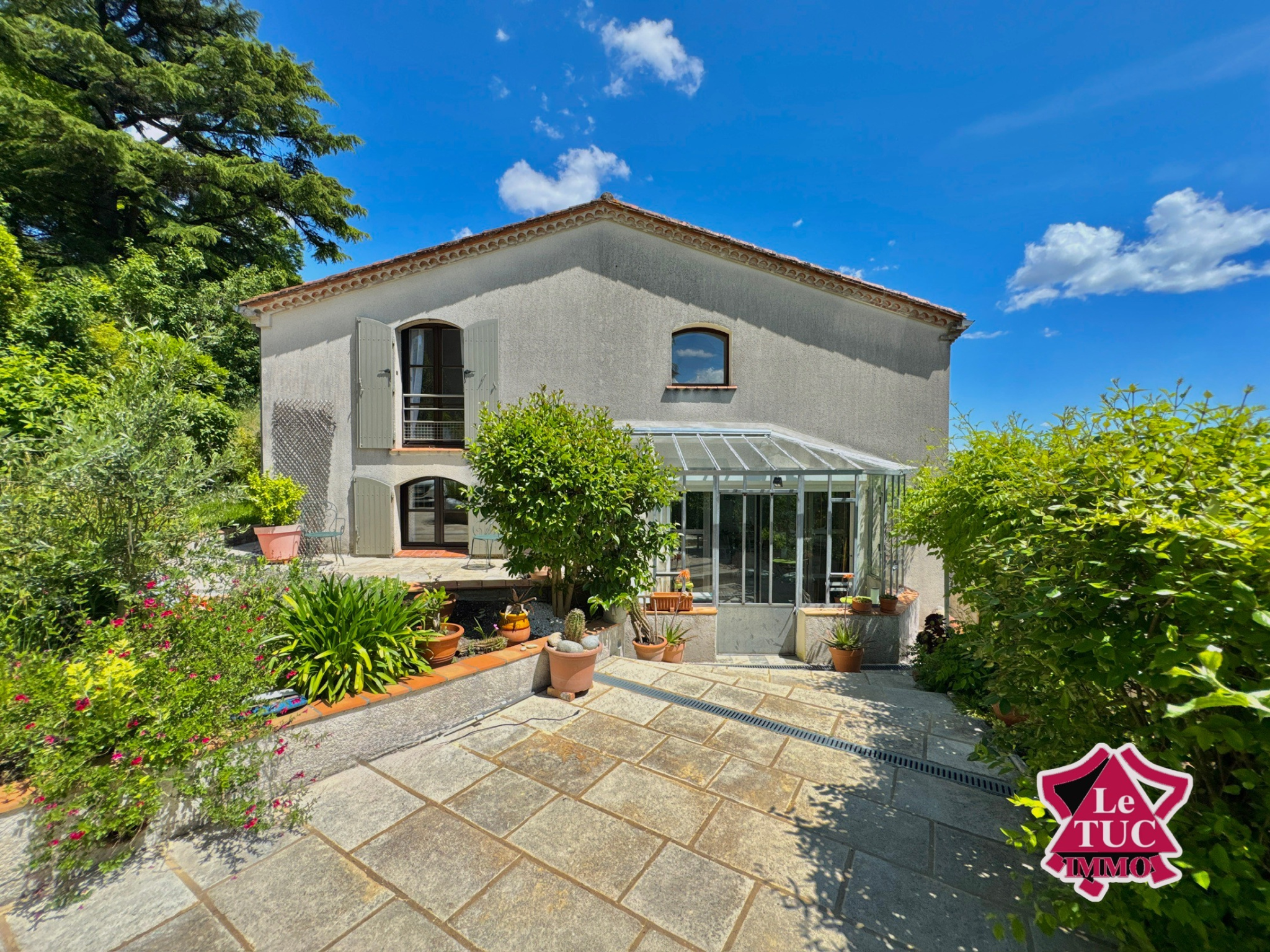 Côté extérieur, la maison dispose d’un terrain clos de 1255 m² avec portail sécurisant la propriété, une aire de stationnement pour deux véhicules, un superbe jardin paysager avec cabane de jardin et serre pour les jardiniers.