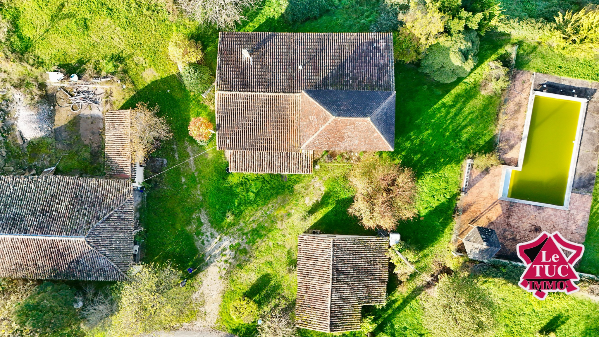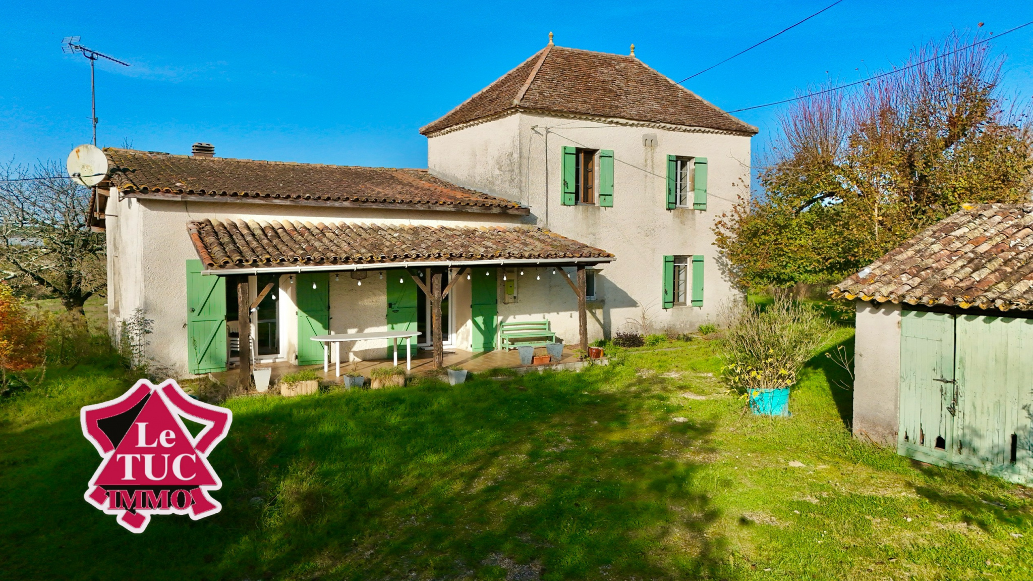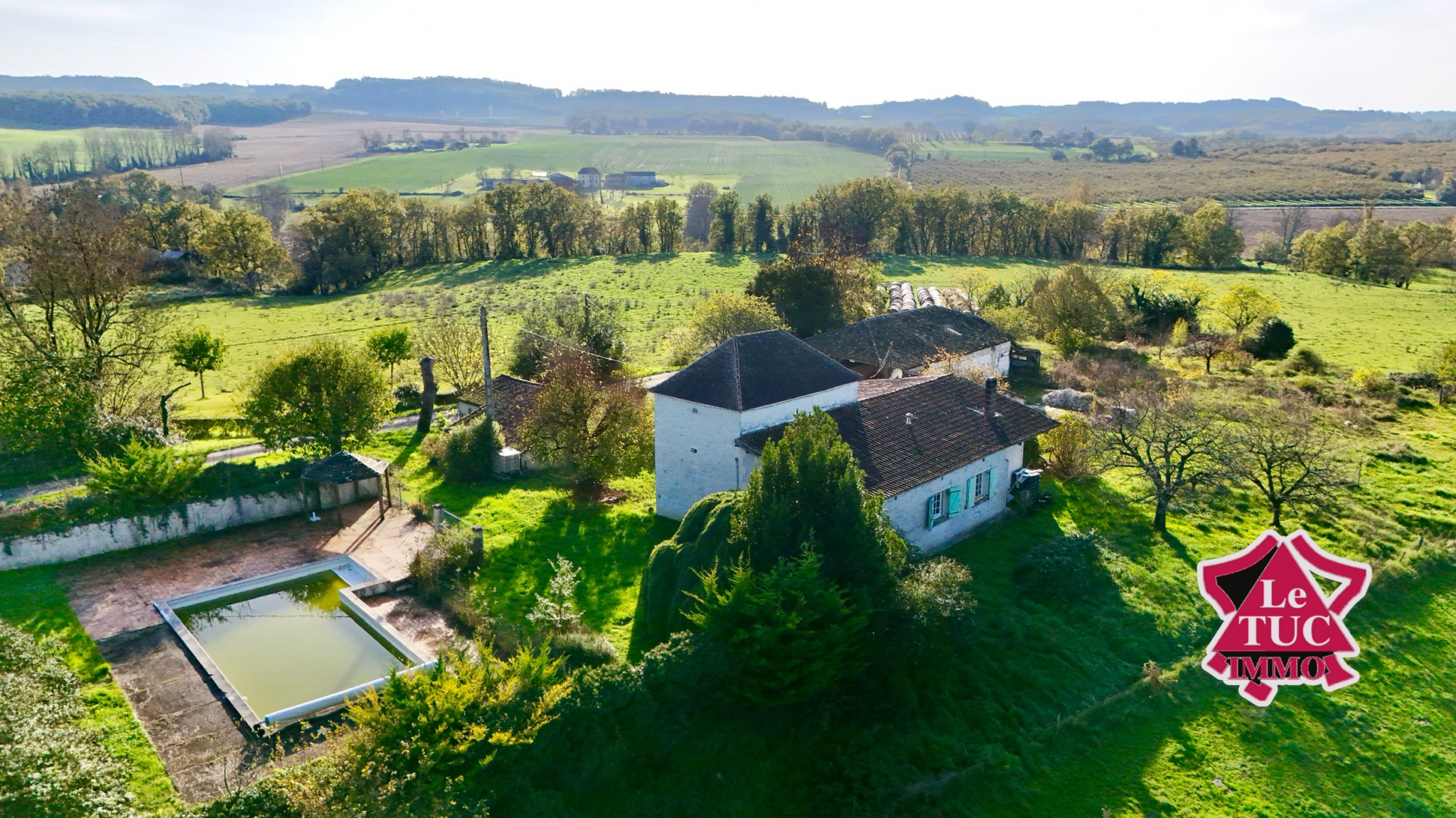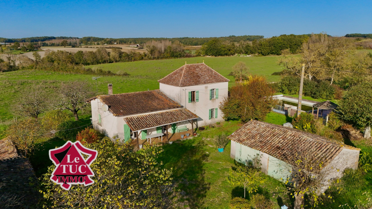 Propriété en pleine campagne, située sur la commune de Monflanquin, comprenant une maison d'habitation de 157 m², une grange de 85 m², une dépendance Garage atelier d'environ 72 m² et une piscine de 60 m².