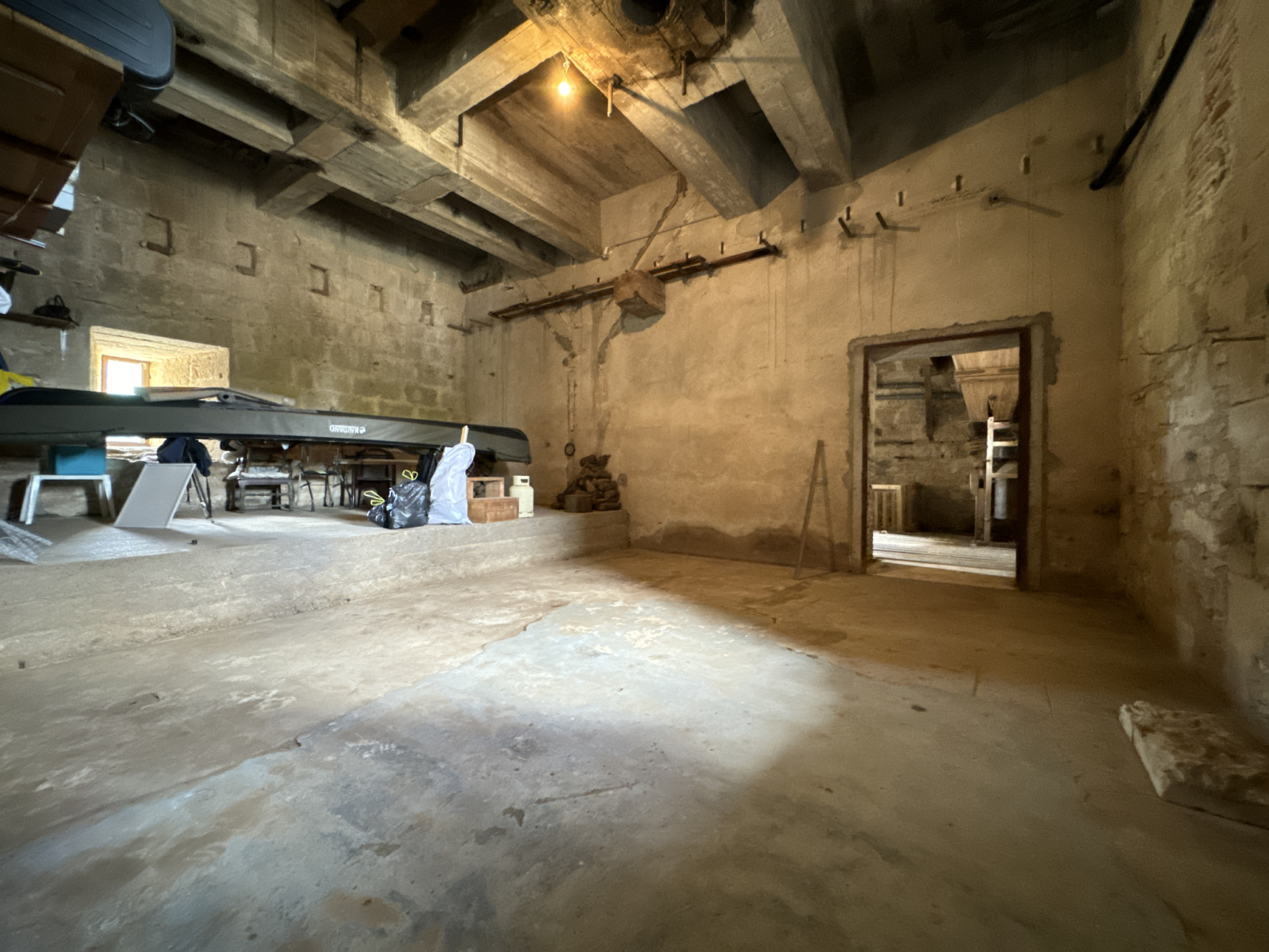 Une entrée, donnant sur un couloir menant à une première pièce de 58 m², ancien emplacement d'une turbine hydroélectrique, ainsi qu'à un deuxième espace de 54 m² avec trois vannes rénovées sur la partie Moulin, comprenant d'anciennes meules à grains pour la farine.
