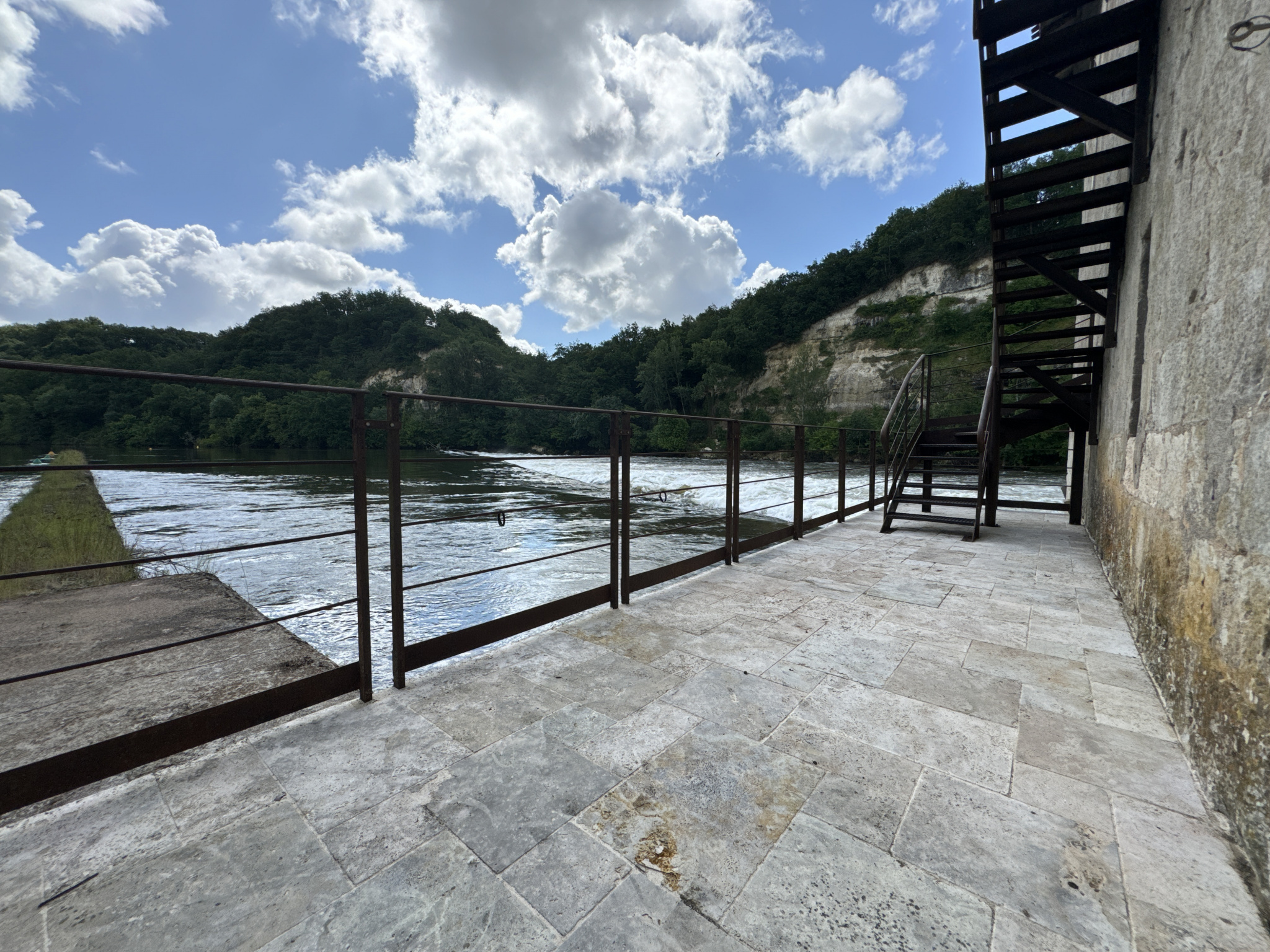 Au 2ème étage, une galerie en mezzanine de 86 m² offrant un point de vue exceptionnel sur la rivière à 180°, avec un deuxième appartement comprenant une pièce de vie avec cuisine de 45 m², ainsi que deux chambres, l'une de 22 m² et l'autre de 14 m² en suite, également avec baignoire et douche, et WC indépendants. Possibilité de créer une troisième chambre si nécessaire.