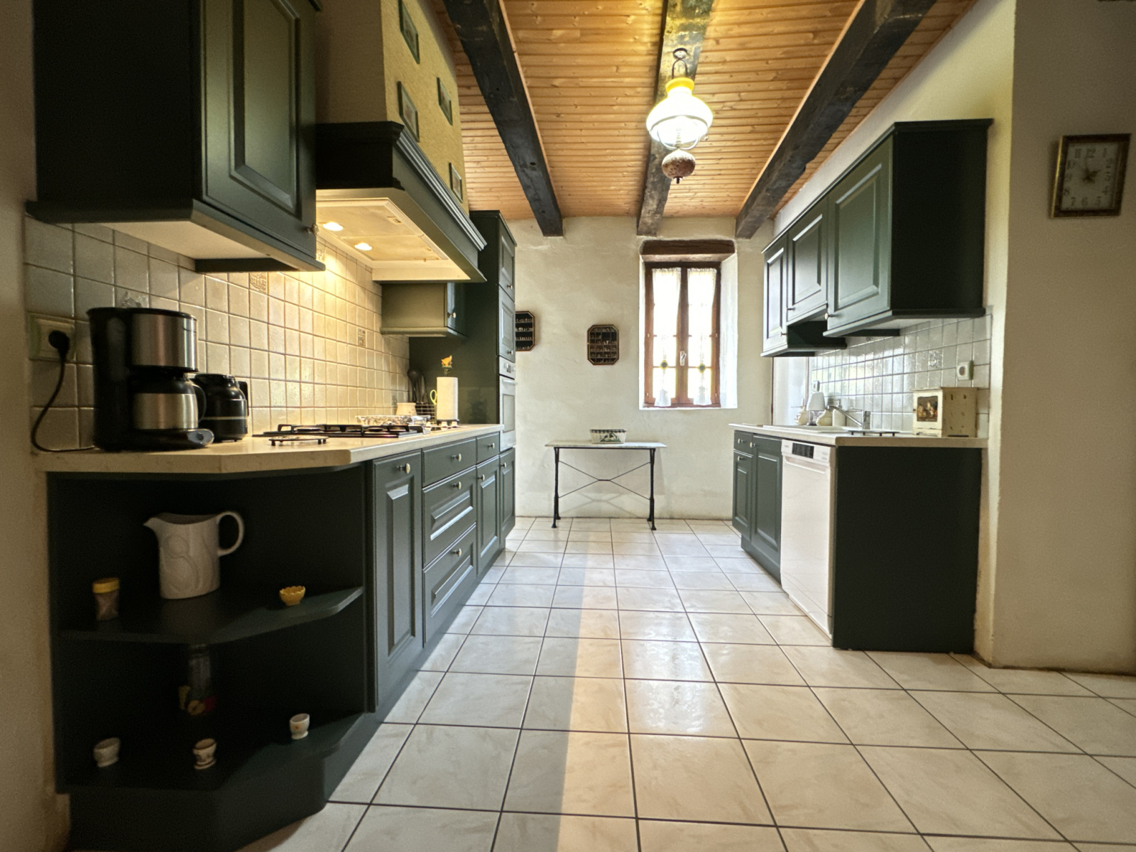 Cette ancienne ferme et grange a été transformée en une habitation confortable avec une pièce à vivre de plus de 100 m², comprenant un salon, un bureau et une salle à manger avec cheminée, ainsi qu'une véranda de 18 m².