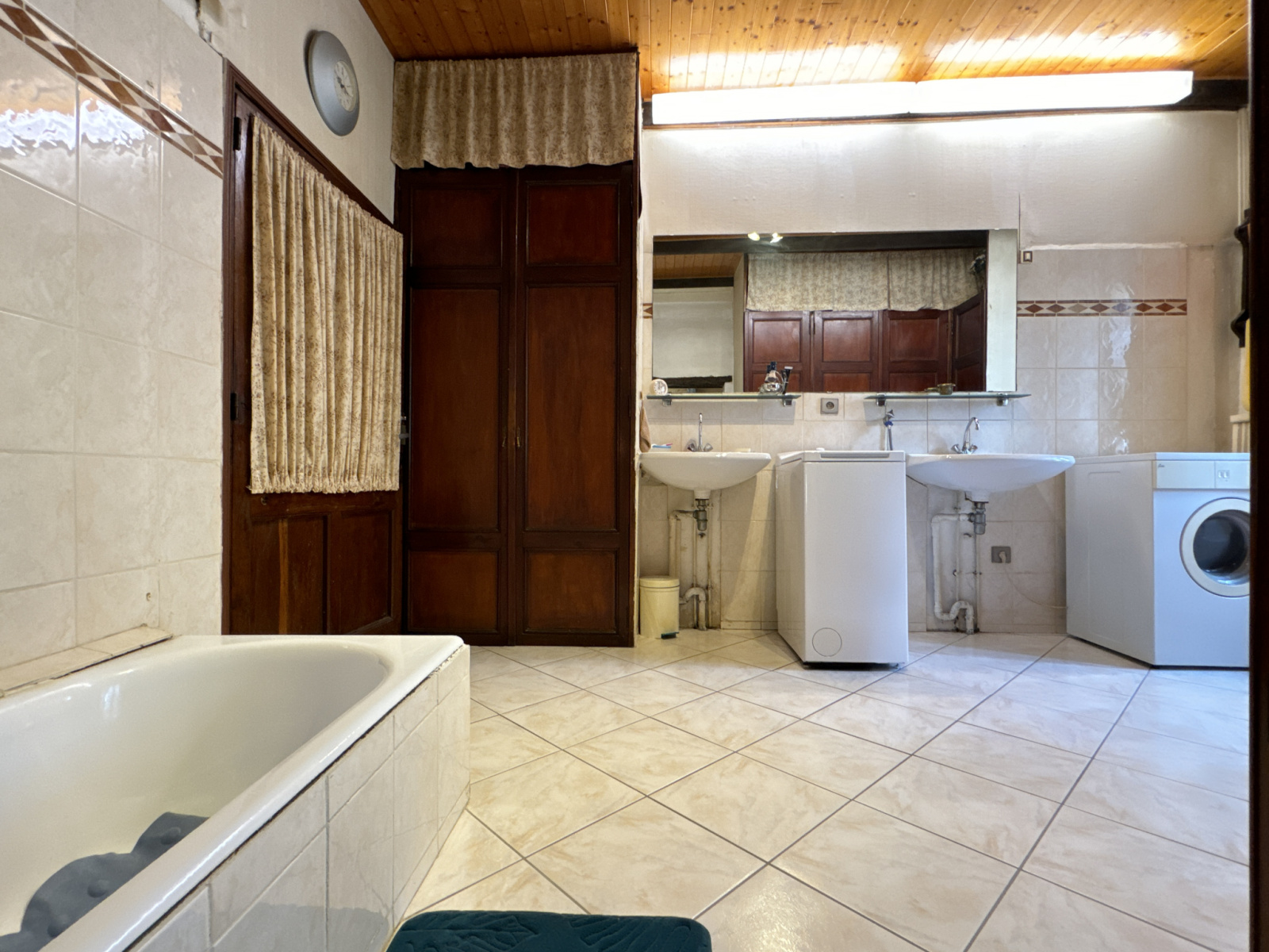 De plus, il y a une piscine couverte au sel d'environ 40 m², un système de filtration neuf, ainsi qu'un garage de 18 m² avec une petite cave très utile.