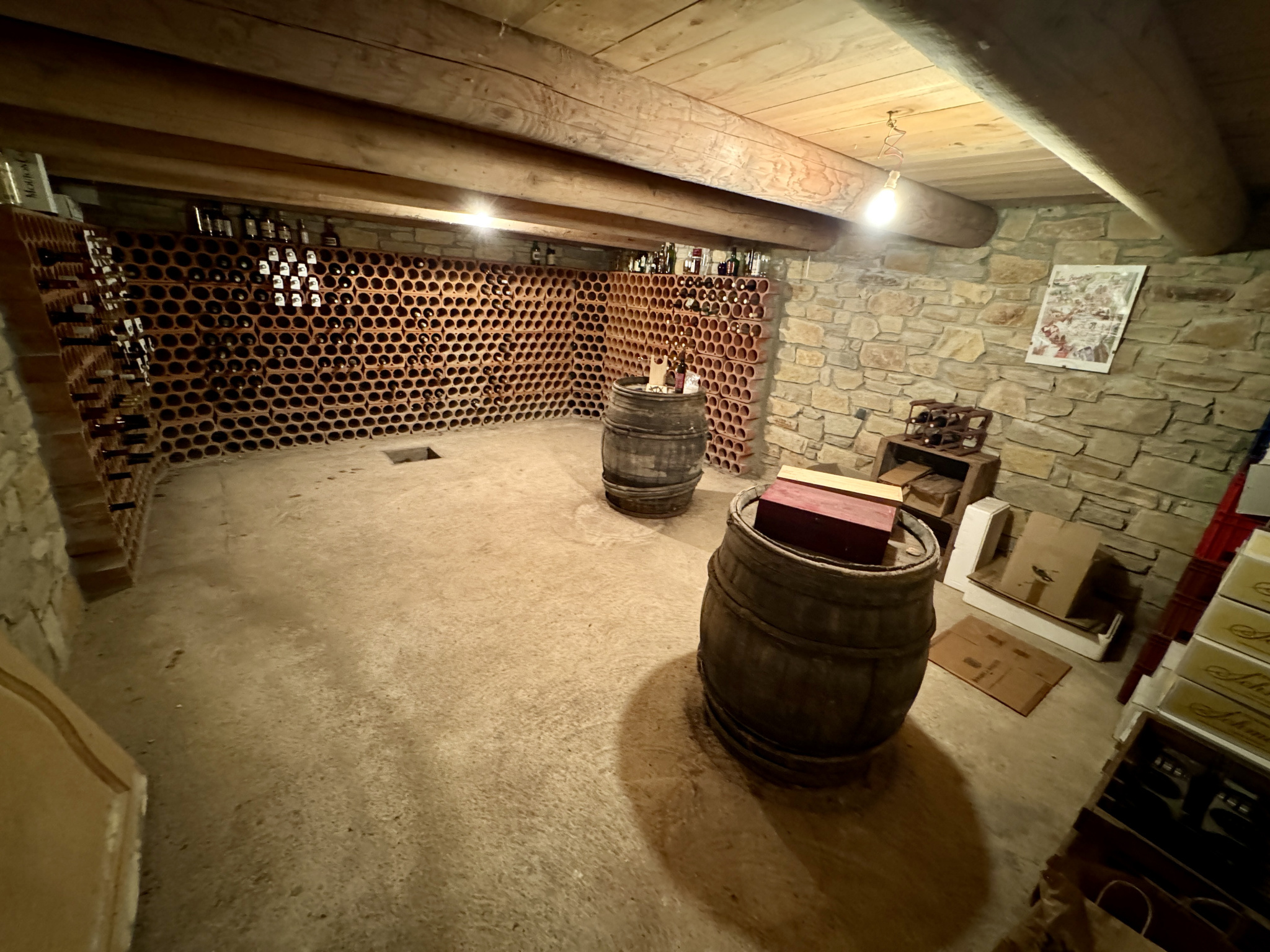 Côté pratique, ce bien dispose d'un grand garage (50 m2) , d'une cave enterrée de 27 m2 ainsi que d'un abris pour le bois et d'un forage.