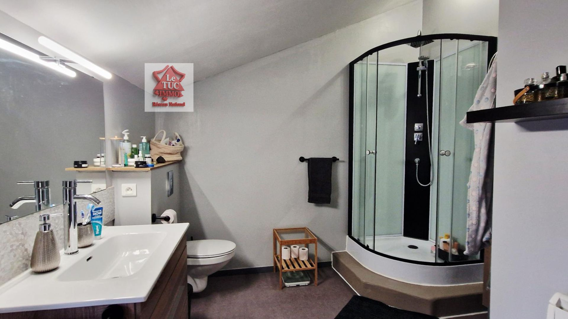 -à l'étage, vous découvrirez trois belles chambres dont une de 40 m², un dressing tout aménagé et une seconde salle d'eau avec WC.