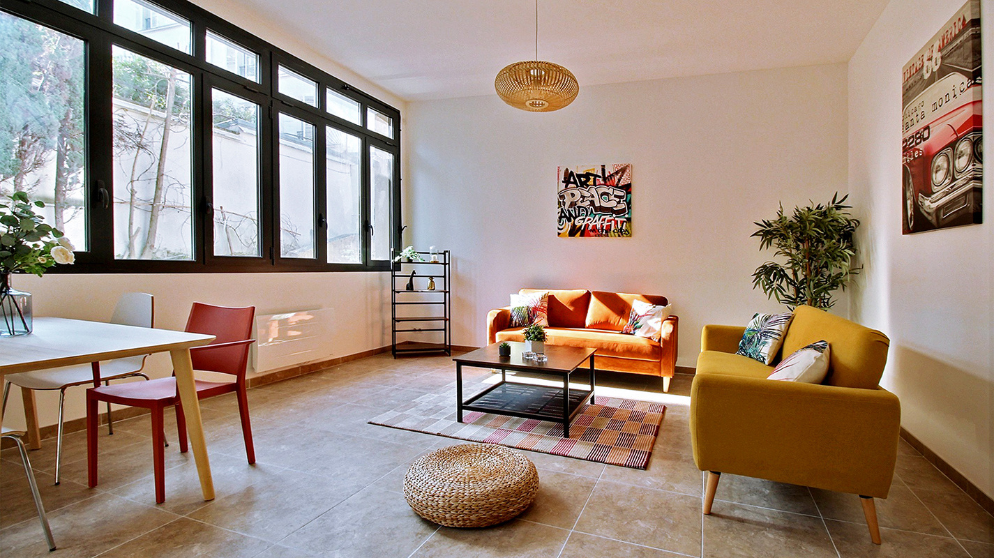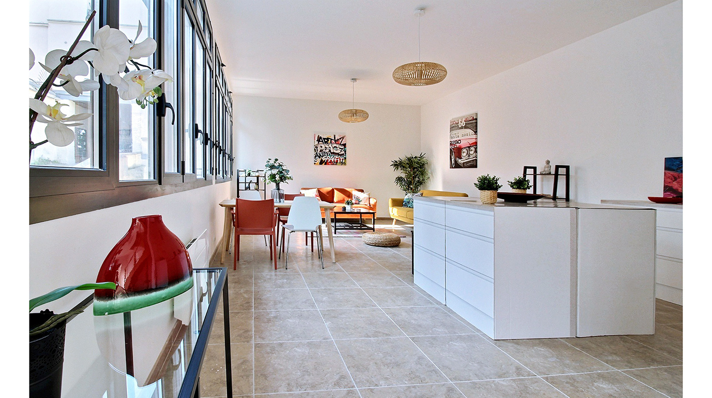 ATYPIQUE ! Magnifique appartement type loft aménagé en duplex avec terrasses en rooftop. Situé rue Catulienne en arrière cour, cet ensemble orienté plein sud comprend au rez de chaussée un très bel espace ouvert séjour/salle à manger/cuisine de près de 52m2 avec 3,20 de hsp, cette pièce à vivre baignée de lumière est éclairées par de belles huisseries alu tout hauteur, une chambre, une salle d'eau avec wc. A l'étage, trois chambres avec chacune sa salle de douche et deux wc séparés, chaque chambre a accès à un balcon filant. Un accès au toit pour profiter de deux terrasses (66m2) à végétaliser avec jardières prêtent à recevoir plantes et autres herbes aromatiques. Aménagements de qualité, parquet chêne (sauf séjour) et volets roulants électrique dans toutes les pièces. Un emplacement de parking dans la cour. Les transports RER D et ligne H tramway T1 et T8 sont à 5minutes à pied, la ligne 13 à 10minutes. Pour organiser une visite ou plus d'infos me contacter : Sophie Durand (EI) agent commercial mandataire en immobilier immatriculé au registre spécial des agents commerciaux (rsac) du tribunal de commerce de Bobigny sous le numéro 511047870. Honoraires charge vendeur. Information d'affichage énergétique sur ce bien DPE C indice 174 GES A indice 5. Date de réalisation du diagnostique énergétique 20 octobre 2021. Montant estimé des dépenses annuelles d'énergie pour un usage standard : entre 1450 et 2020 euros par an.