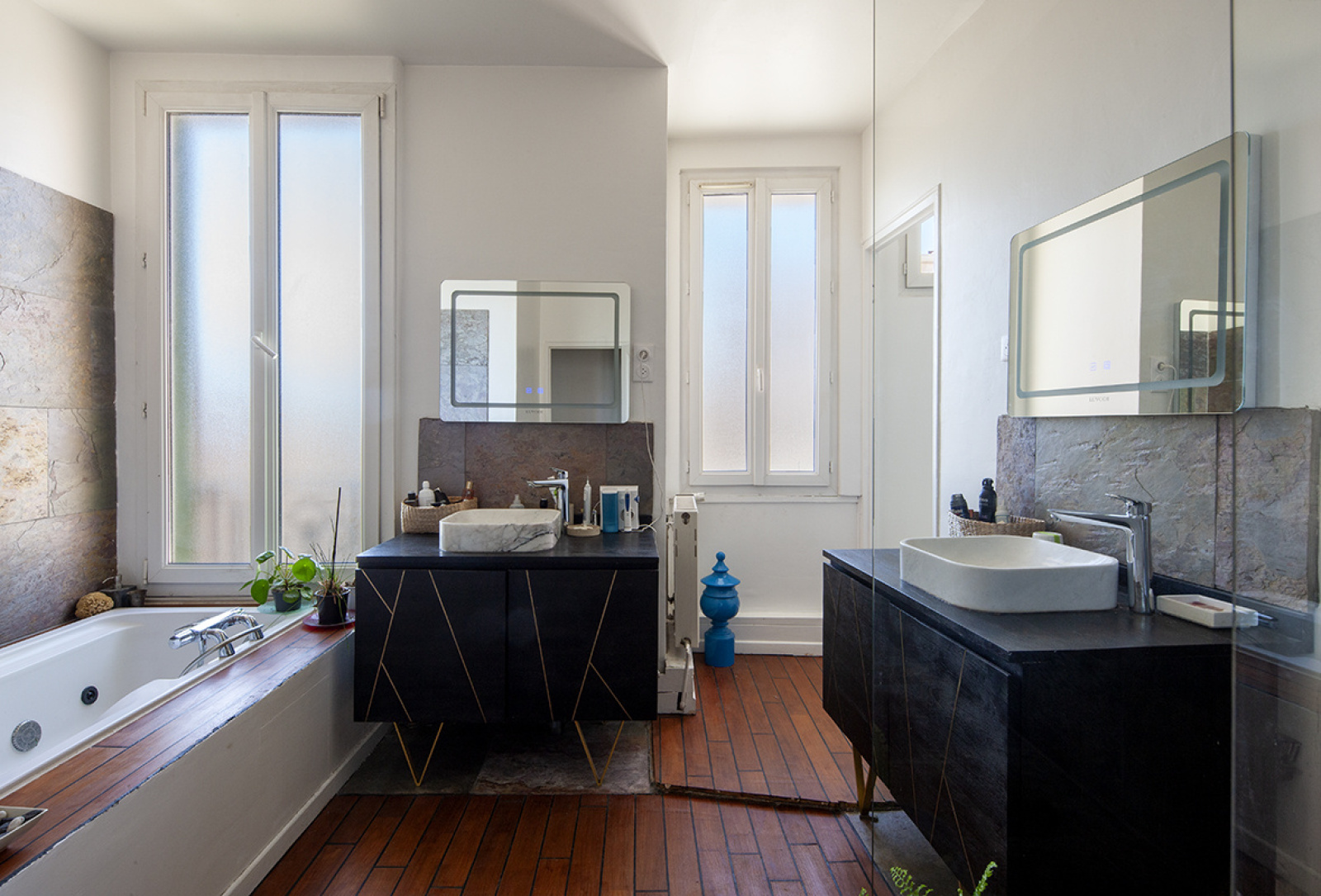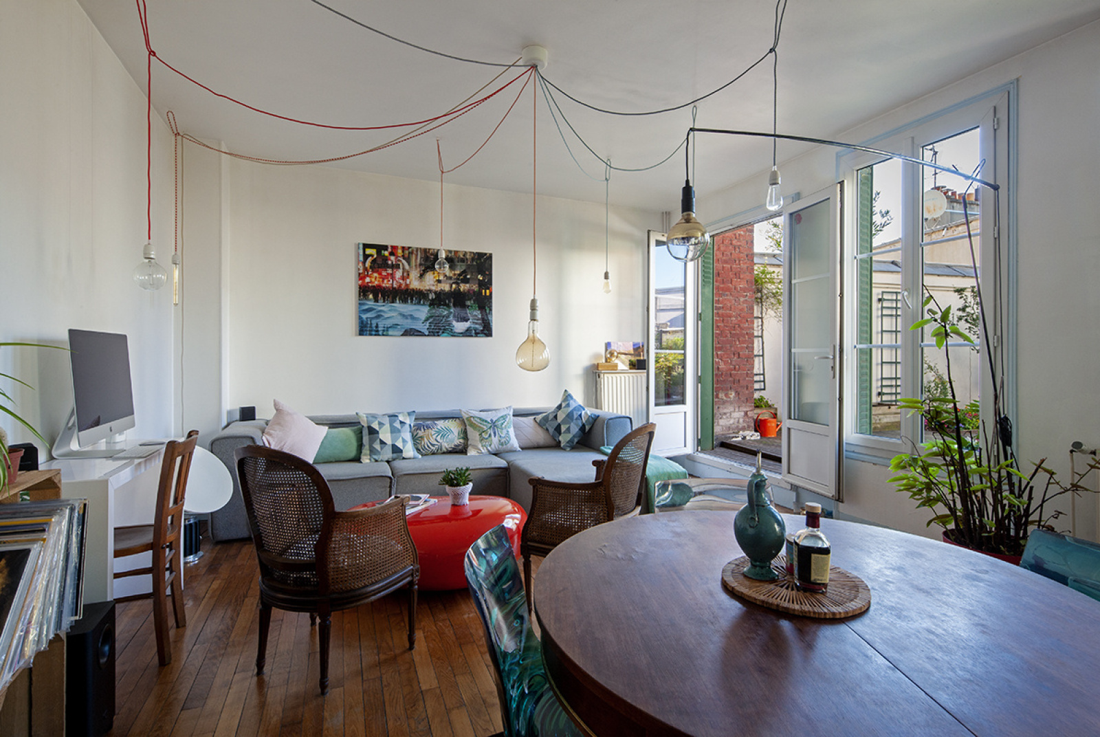 UNIQUE ! Comme un Penhouse en plein coeur historique de Saint-Denis, un duplex de 122m2 habitable (106 carrez) avec combles aménagées et terrasse arborée XXL spéciale jardinage et farniente. Le duplex comprend un séjour de 40m2 avec cuisine équipée et aménagée donnant accès direct à la terrasse, à l'étage deux grandes chambres et une salle de bains familiale (baignoire, douche italienne et double vasque), les combles sont aménagées en deux petites chambres. Un parking vient complèter ce bien d'exception. Transports, commerces et écoles à proximité immédiate. Honoraires charge vendeurs.