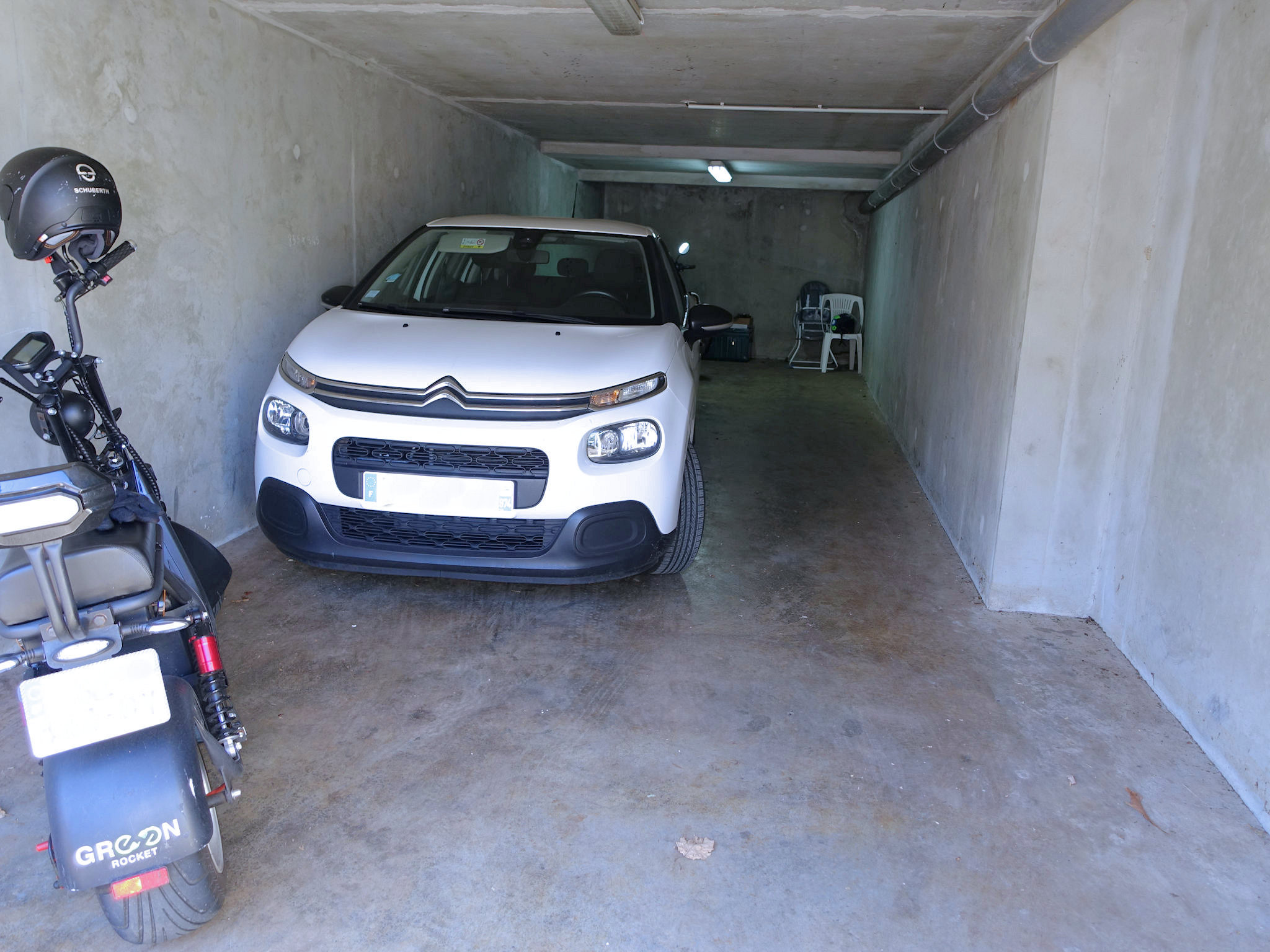 Cuisine aménagée, deux chambres climatisées avec placard, WC séparé, bon état général, faibles charges et le plus de ce logement c'est un box fermé de 37m² permettant le stationnement de 2 véhicules + moto.